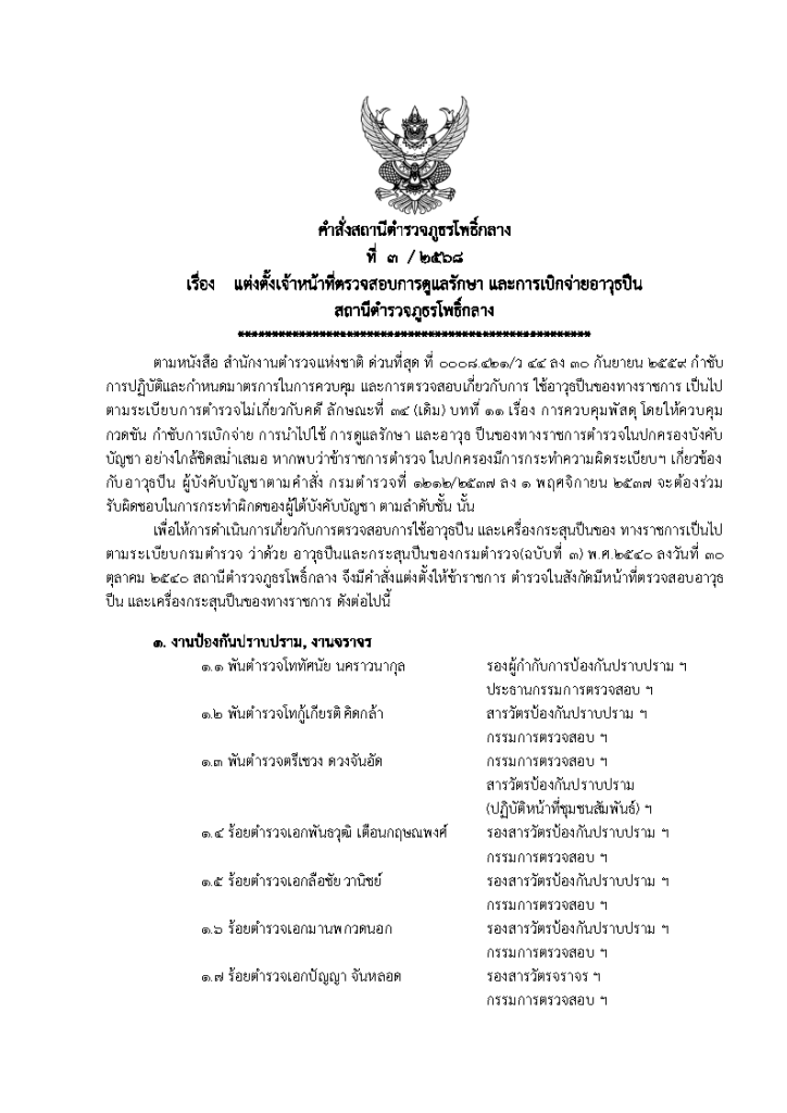 มีการตรวจอาวุธทุกเดือนโดยเจ้าหน้าที่ควบคุม ,ตวจสอบ ,ดูแลการรักษา เมื่อตรวจเสร็จสิ้นการตรวจสอบแล้ว เจ้าหน้าที่ได้ทำการรายงานให้หัวหน้าสถานีและ ภ.จว.นครราชสีมา ทราบ เพื่อป้องกันการทุจริต หรือนำอาวุธไปใช้โดยมิชอบ