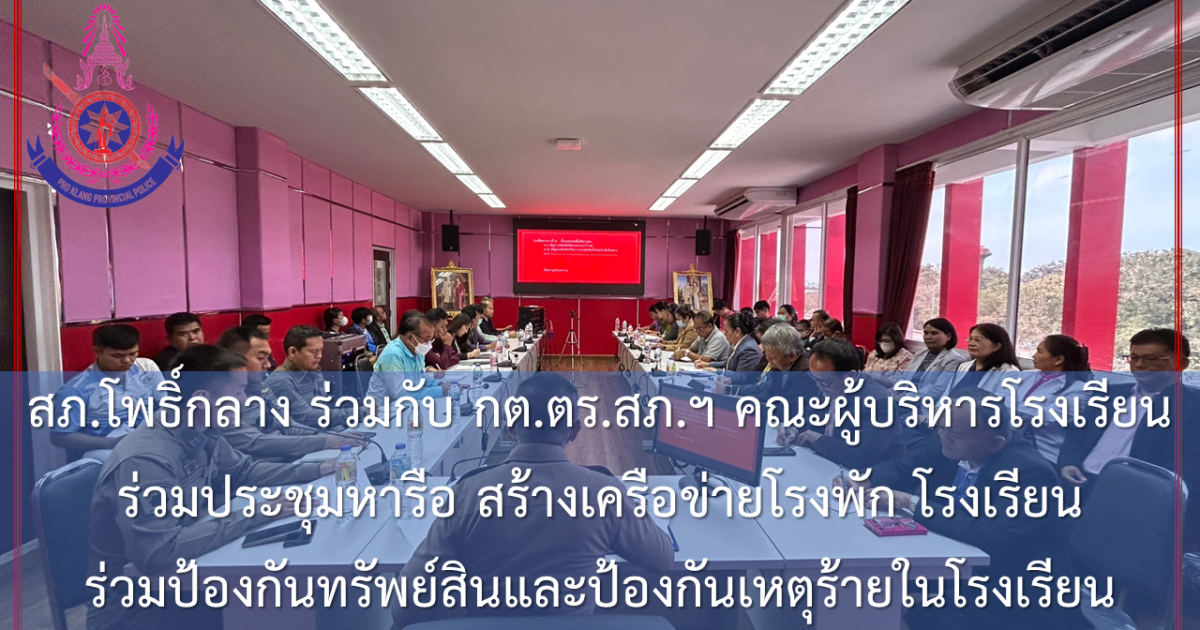 พ.ต.อ.วีณวัฒน์ ศรีแย้ม ผกก.สภ.โพธิ์กลาง พร้อมด้วย พ.ต.ท.ทัศนัย นคราวนากุล รอง ผกก.ป.สภ.โพธิ์กลาง พ.ต.ท.กู้เกียรติ คิดกล้า สวป.สภ.โพธิ์กลาง พ.ต.ต.เชวง ดาวจันอัด สวป.(ชส.)สภ.โพธิ์กลางร่วมกับ กต.ตร.สภโพธิ์กลาง คณะผู้บริหารโรงเรียนและตัวแทนโรงเรียน ในเขตพื้นที่รับผิดชอบ ประชุมหารือ สร้างเครือข่ายโรงพัก โรงเรียน ร่วมป้องกันทรัพย์สินของโรงเรียนและป้องกันเหตุร้ายต่างๆในโรงเรียน ณ ศปก.สภ.โพธิ์กลาง