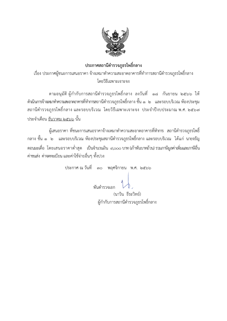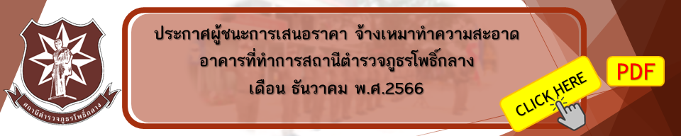 1.ประกาศผู้ชนะการเสนอราคา จ้างเหมาทำความสะอาดที่ทำการสถานีตำรวจภูธรโพธิ์กลาง