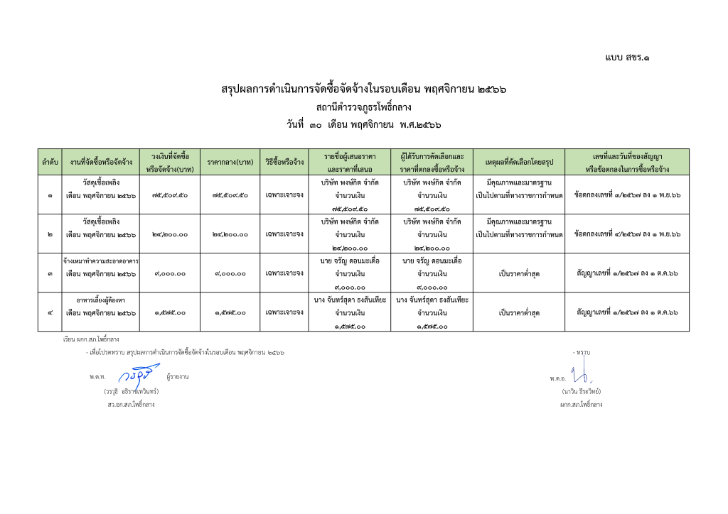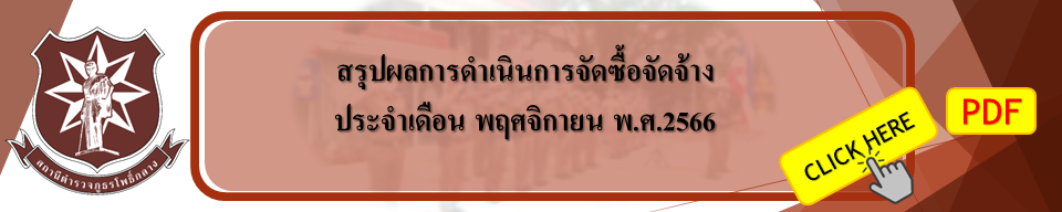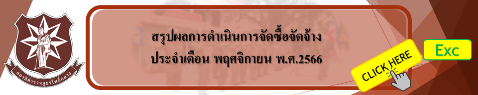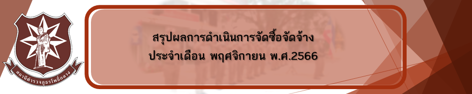 Home » มาตรฐาน ITA » การจัดซื้อจัดจ้างหรือการจัดหาพัสดุ » O15 สรุปผลการจัดซื้อจัดจ้างหรือการจัดหาพัสดุรายเดือน » สรุปผลการจัดซื้อจัดจ้างหรือการจัดหาพัสดุราย เดือน พฤศจิกายน พ.ศ.2566