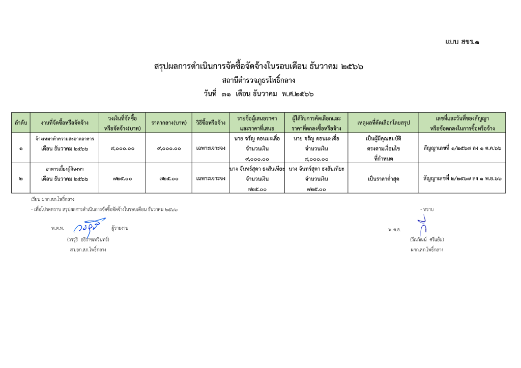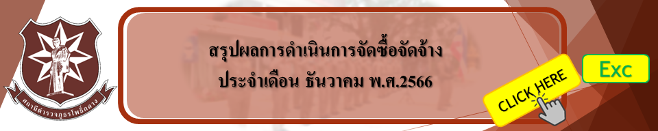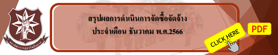 Home » มาตรฐาน ITA » การจัดซื้อจัดจ้างหรือการจัดหาพัสดุ » O15 สรุปผลการจัดซื้อจัดจ้างหรือการจัดหาพัสดุรายเดือน » สรุปผลการจัดซื้อจัดจ้างหรือการจัดหาพัสดุราย เดือน ธันวาคม พ.ศ.2566