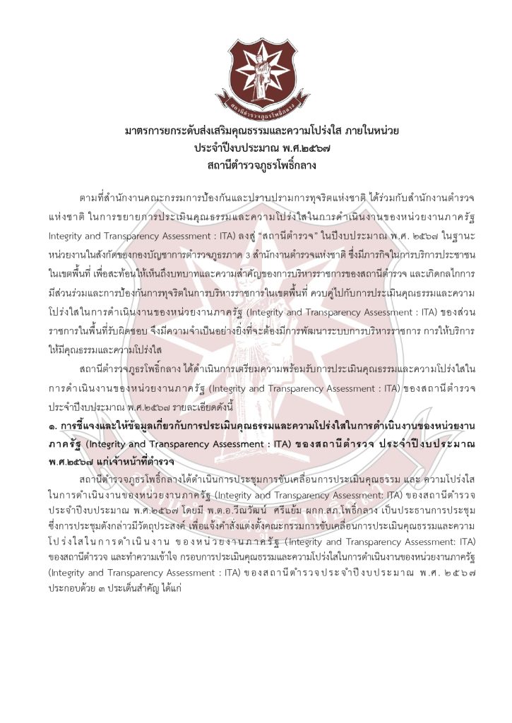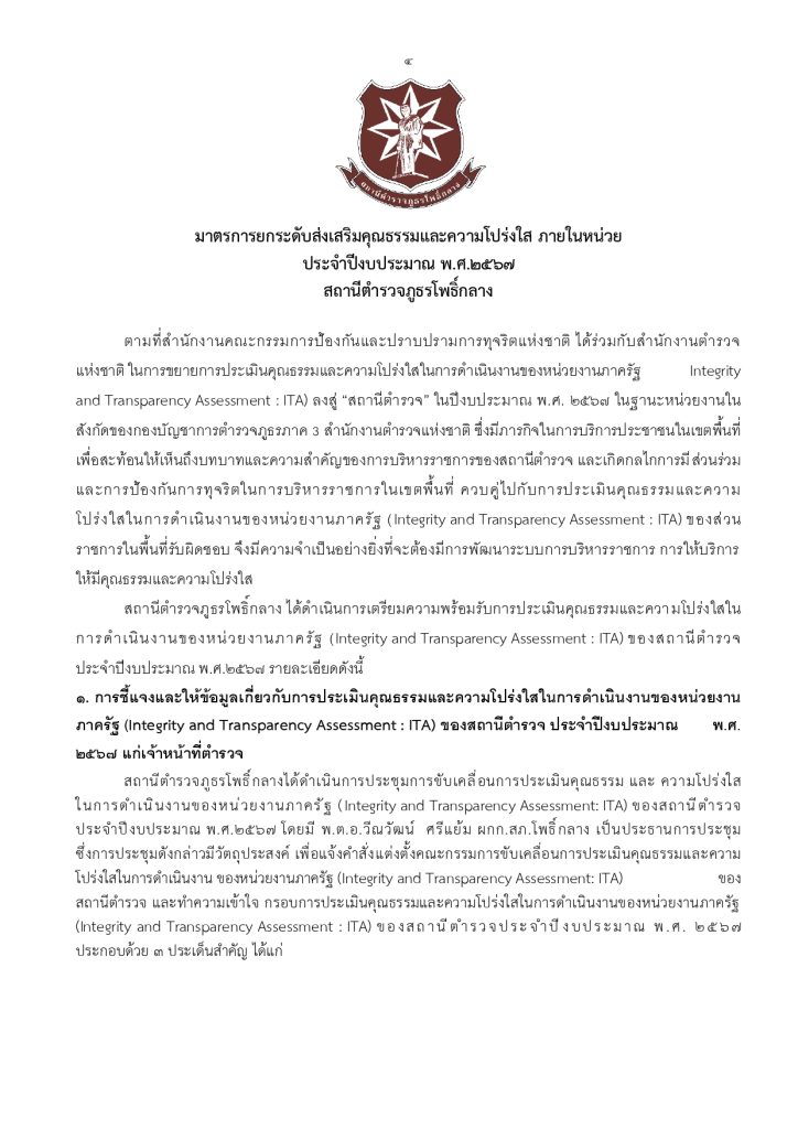 O24 มาตรการการยกระดับคุณธรรมและความโปร่งใสภายในหน่วยงาน