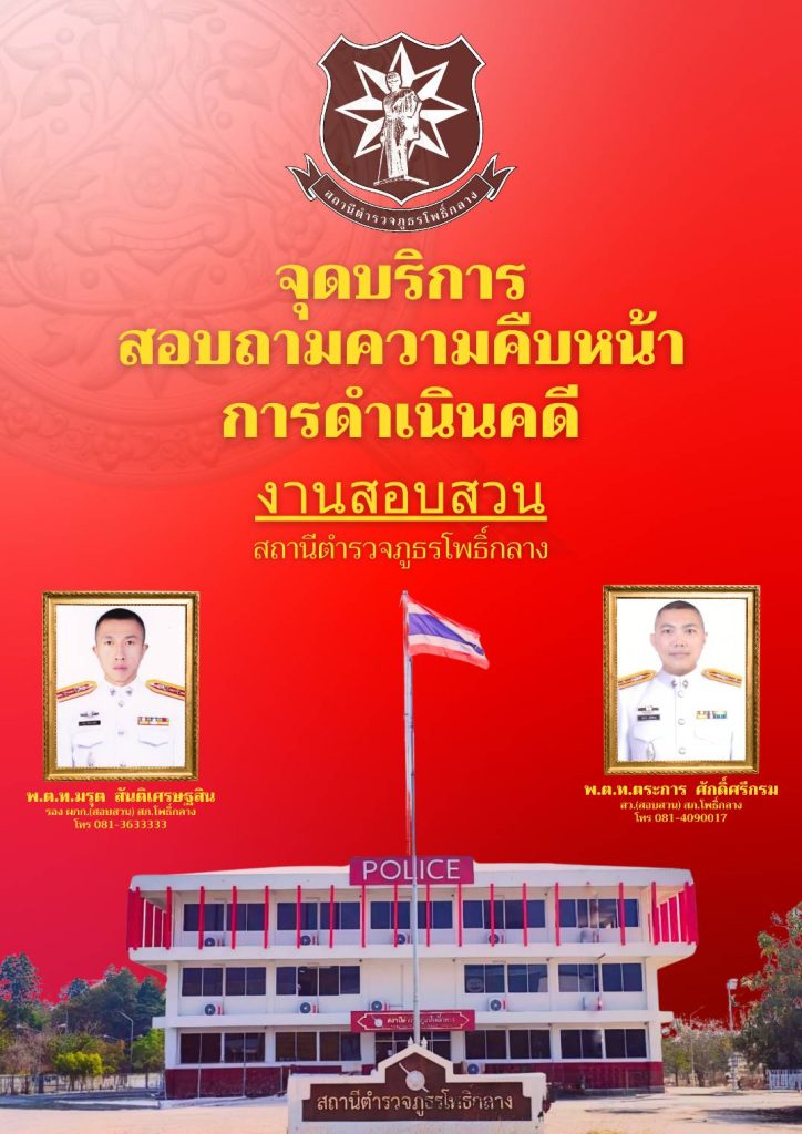 สถานีตำรวจภูธรโพธิ์กลางได้มีการจัดทำและติดตั้งป้ายประชาสัมพันธ์จุดบริการให้ประชาชนที่มาติดต่อราชการทราบ