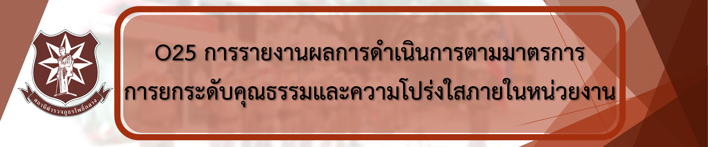 O25 การรายงานผลการดำเนินการตามมาตรการการยกระดับคุณธรรมและความโปร่งใสภายในหน่วยงาน