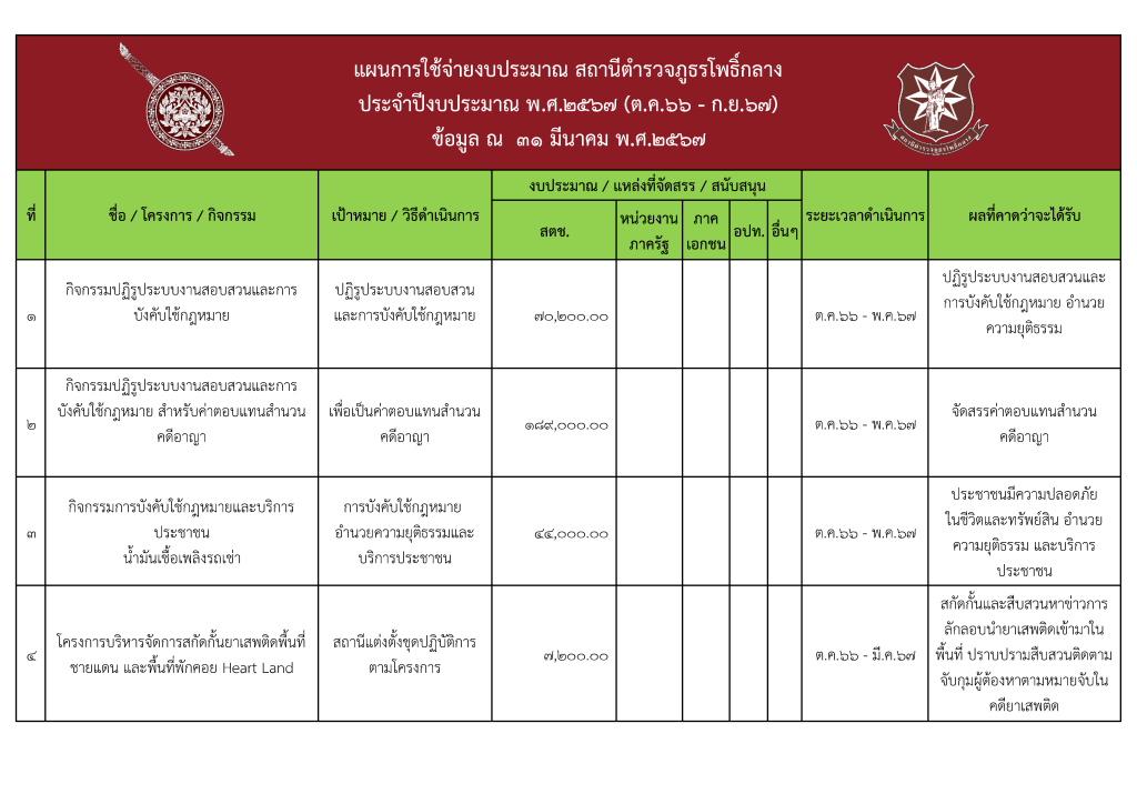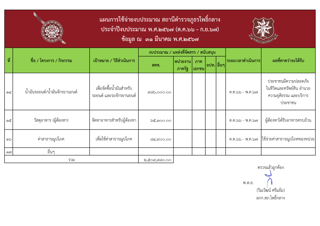 Home » มาตรฐาน ITA » แผนการใช้จ่ายงบประมาณประจำปี » O12 แผนการใช้จ่ายงบประมาณประจำปีและรายงานผลการใช้จ่ายงบประมาณประจำปี » รายงานแผนการใช้จ่ายงบประมาณประจำปีงบประมาณ พ.ศ.2567