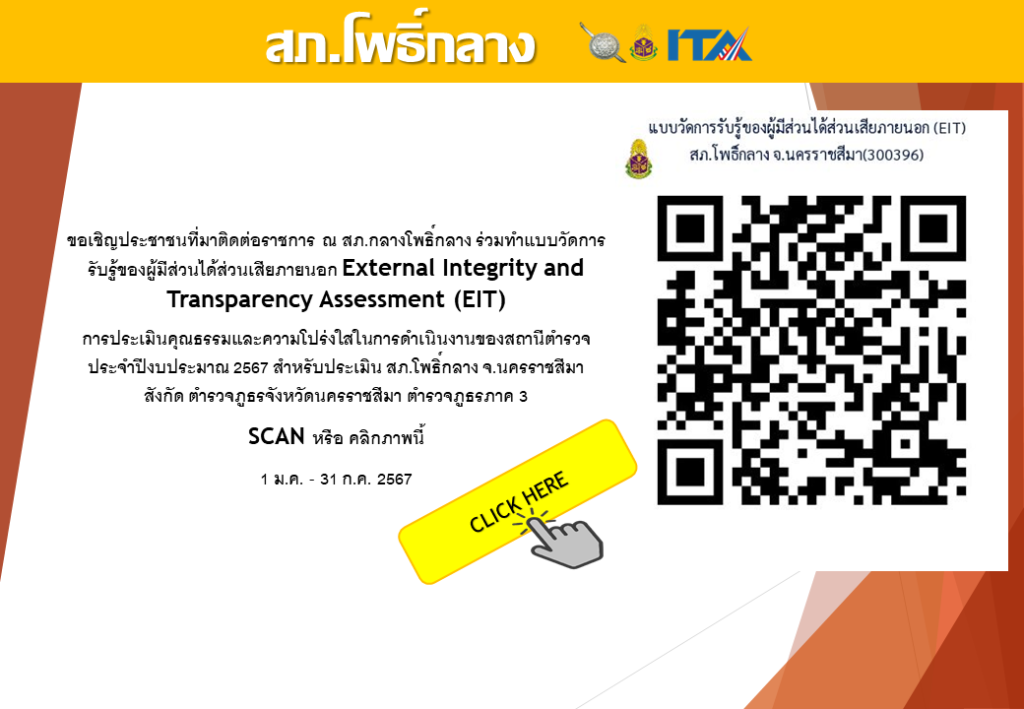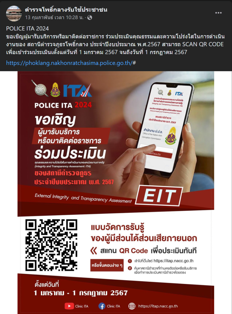 ประชาสัมพันธ์ข้อมูลการประเมินคุณธรรมและความโปร่งใสในการดำเนินงานของหน่วยงานภาครัฐ (Integrity & Transparency Assessment: ITA) ของ สถานีตำรวจภูธรโพธิ์กลาง ประจำปีงบประมาณ พ.ศ.2567