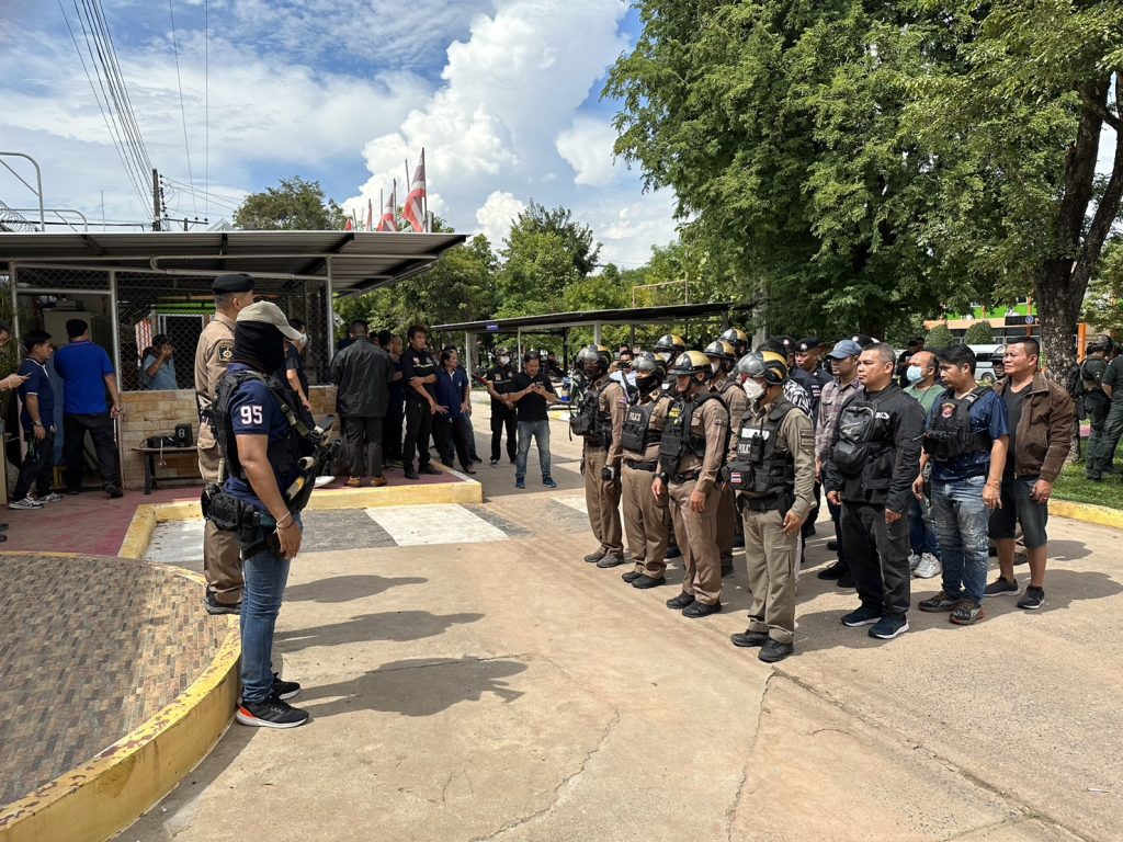 วันที่10 เม.ย.67 เวลา 23.30 น. พล.ต.ต.ระพีพงษ์ สุขไพบูลย์ รอง ผบช.ภ.3 พร้อมด้วย พล.ต.ต.ณรงค์ฤทธิ์ ด่านสุวรรณ ผบก.ภ.จว.นครราชสีมา พ.ต.อ.คเชนท์ เสตะปุตตะ รอง ผบก.ภ.จว.นครราชสีมา พ.ต.อ.วีณวัฒน์ ศรีแย้ม ผกก.สภ.โพธิ์กลาง ,พ.ต.ท.ทัศนัย นคราวนากุล รอง ผกก.ป.ฯ ,พ.ต.ท.กู้เกียรติ คิดกล้า สวป.ฯ , พ.ต.ท.ชัยพล คงขุนทด สว.สส.ฯ , ร้อยเวร 2-0 ,4-0 พร้อม ว.30 ร่วมกับ นายอาทิตย์ ชามขุนทด ผู้อำนวยการกลุ่มงานศูนย์ดำรงธรรมจังหวัดนครราชสีมา , พ.ต.ชัยณรงค์ ทะนงอาษา หน.ชุด กอ.รมน.จังหวัดนครราชสีมา , นายนพดล กมลกลาง นักวิชาการสาธารณสุขชำนาญการสำนักงานสาธารณสุขจังหวัดนครราชสีมา , นายนิสิต วงศ์หทัย ป้องกันจังหวัดนครราชสีมาร่วมตรวจสถานประกอบการในพื้นที่ สภ.โพธิ์กลาง อ.เมืองนครราชสีมา จว.นครราชสีมา เพื่อรักษาความสงบเรียบร้อยและป้องกันเหตุ ในช่วงเทศกาลสงกรานต์