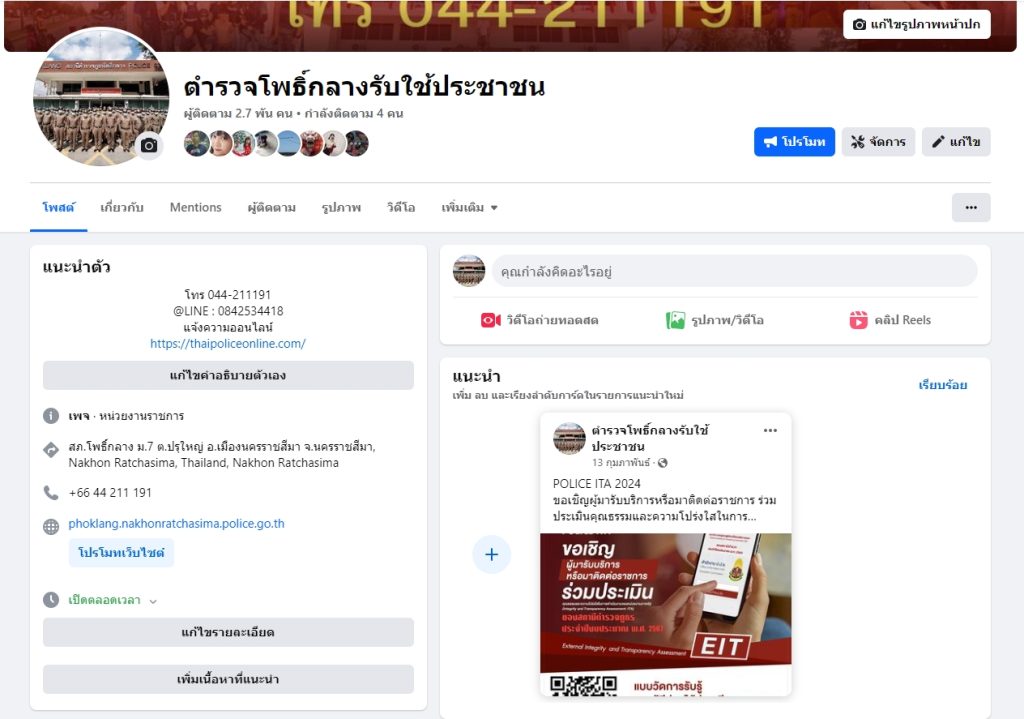การเผยแพร่หน้าเว็บไซต์หลักของสถานีตำรวจผ่านสื่อ Facebook