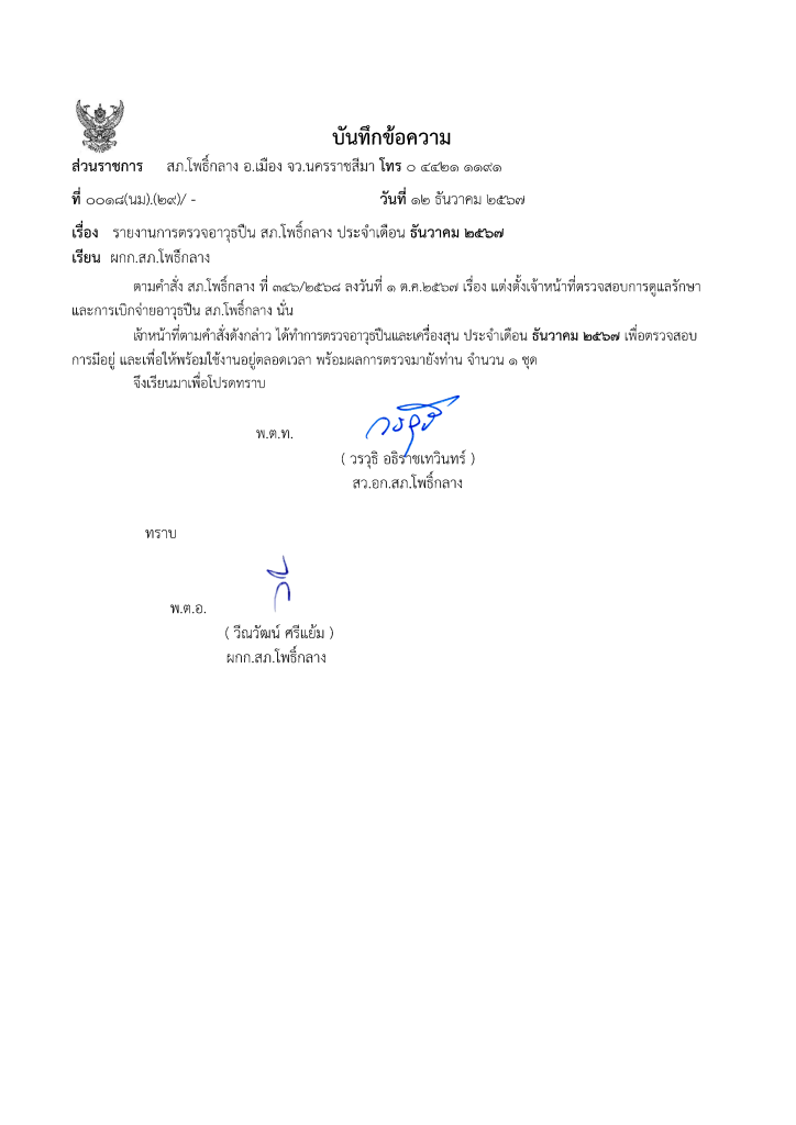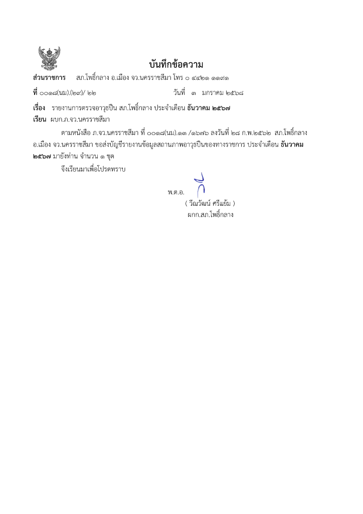 รายงานการจัดการทรัพย์สินของราชการ และของบริจาคประจำเดือน ธันวาคม พ.ศ.2567