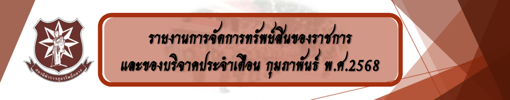 รายงานการจัดการทรัพย์สินของราชการ และของบริจาคประจำเดือน กุมภาพันธ์ พ.ศ.2568