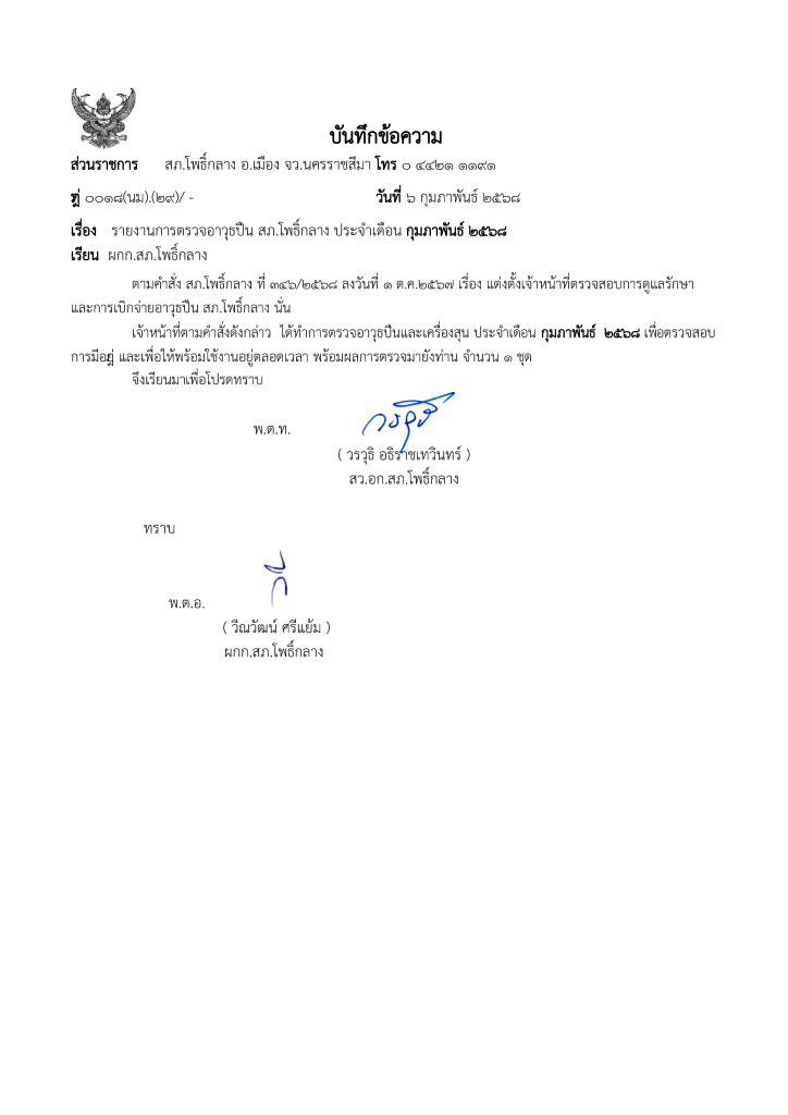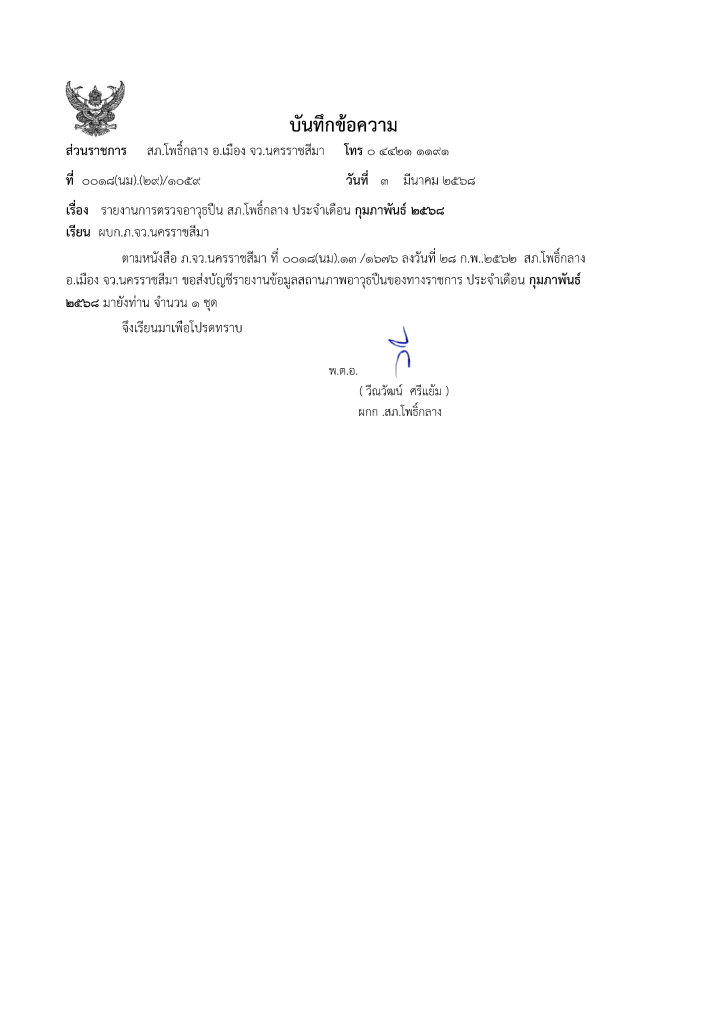 มีการรายงานการตรวจอาวุธปืนไปยัง ภ.จว.นครราชสีมาทราบ