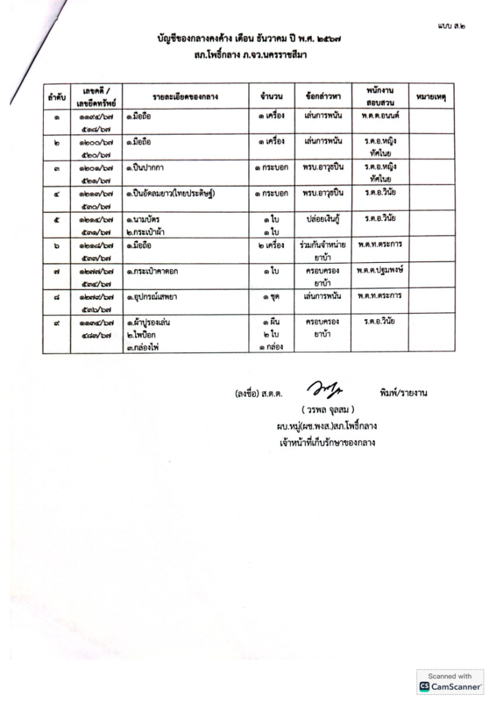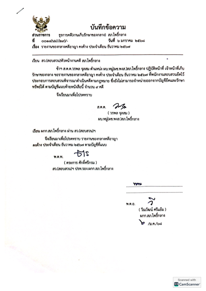 รายงานผลการจัดเก็บของกลางในคดีอาญา ประจำเดือน ธันวาคม พ.ศ.2567