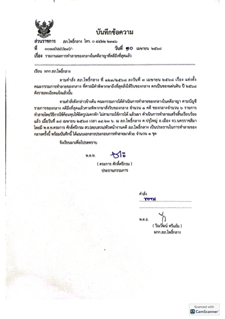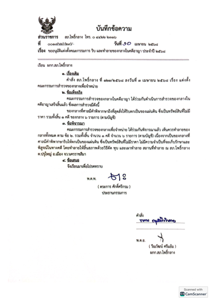 ก่อนที่จำมีการทำลายของกลางในคดีอาญา คณะกรรมการที่มีหน้าที่ในการริบและทำลายของกลางในคดีอาญา ได้ทำหนังสือขออนุมัติทำลายของกลางในคดีญาจากหัวหน้าสถานี เมื่อทำลายของกลางในคดีอาญาเสร็จสิ้นก็มีการรายงานผลให้หัวหน้าสถานีทราบ
