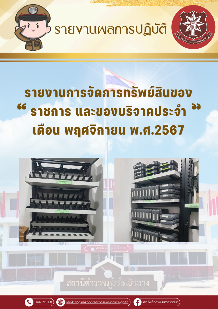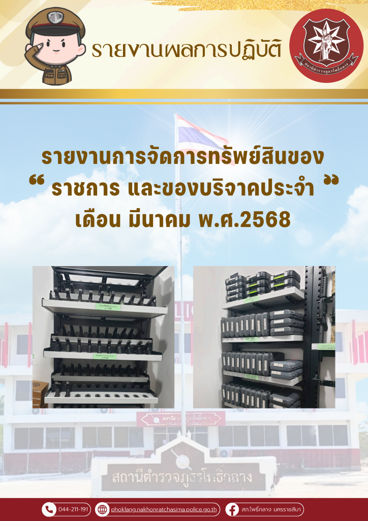 รายงานผลการจัดการทรัพย์สินของทางราชการ ของบริจาค และการจัดเก็บของกลาง