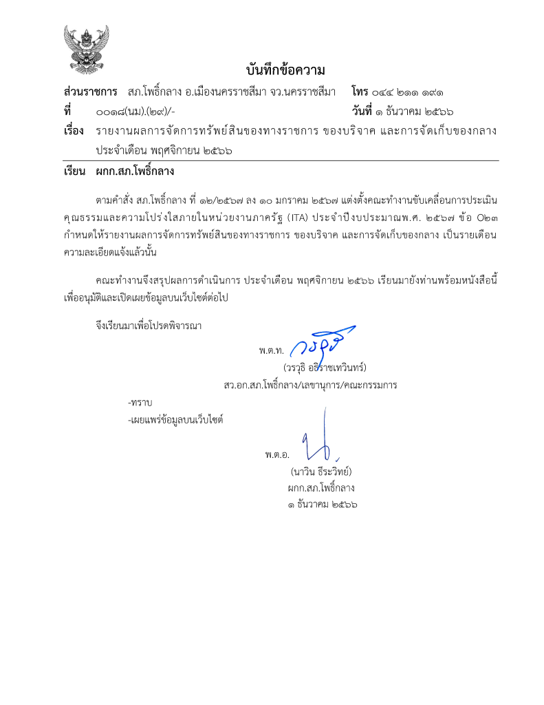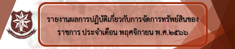 Home » รายงานผลการปฏิบัติเกี่ยวกับการจัดการทรัพย์สินของราชการ ประจำเดือน พฤศจิกายน พ.ศ.2566