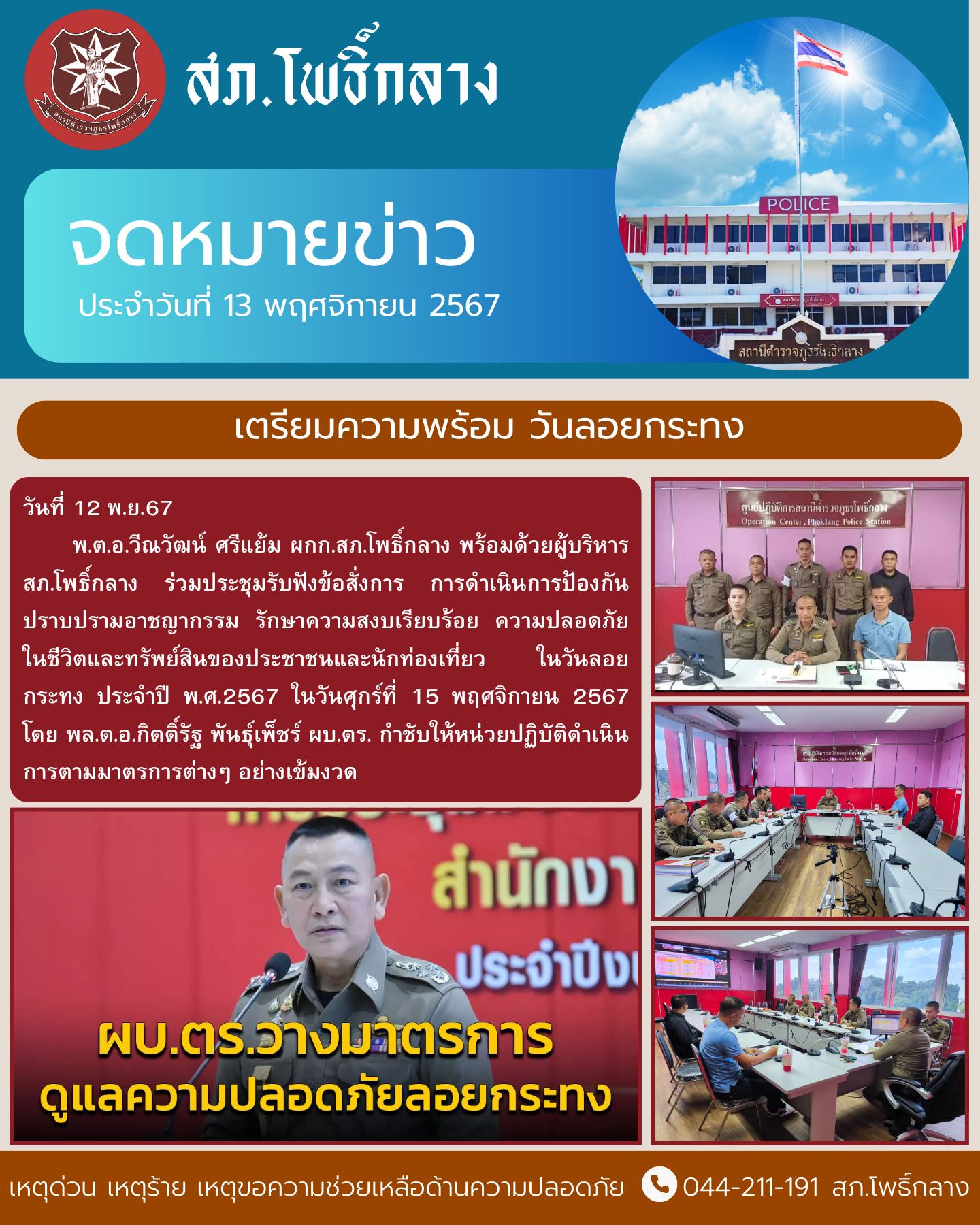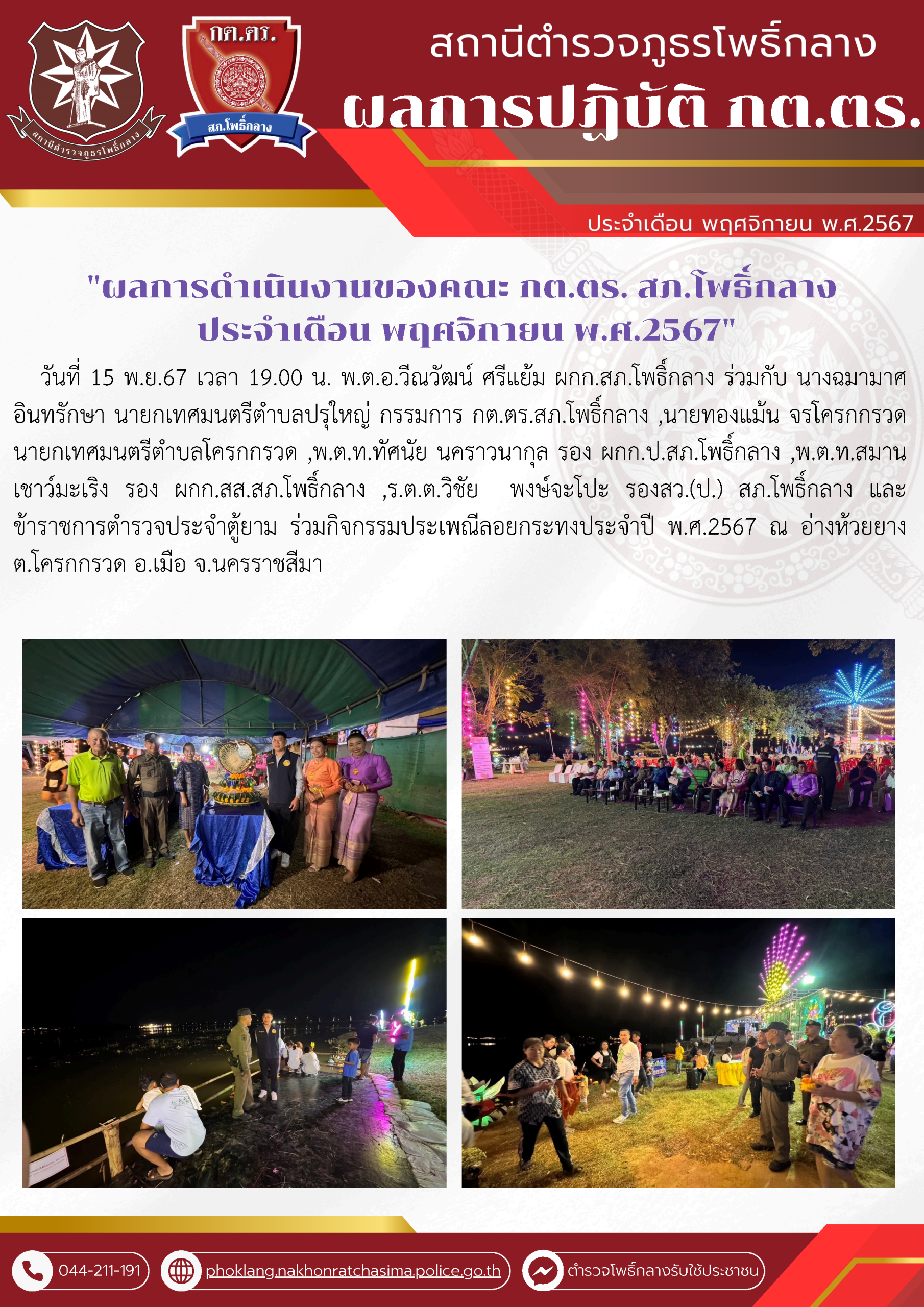 วันที่ 15 พ.ย.67 เวลา 19.00 น. พ.ต.อ.วีณวัฒน์ ศรีแย้ม ผกก.สภ.โพธิ์กลาง ร่วมกับ นางฉมามาศ อินทรักษา น