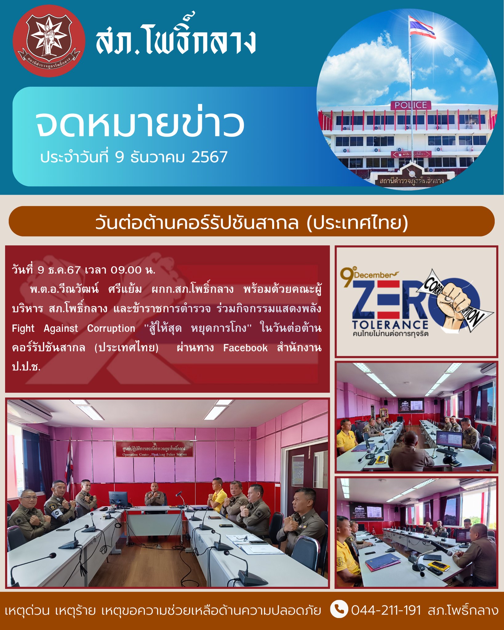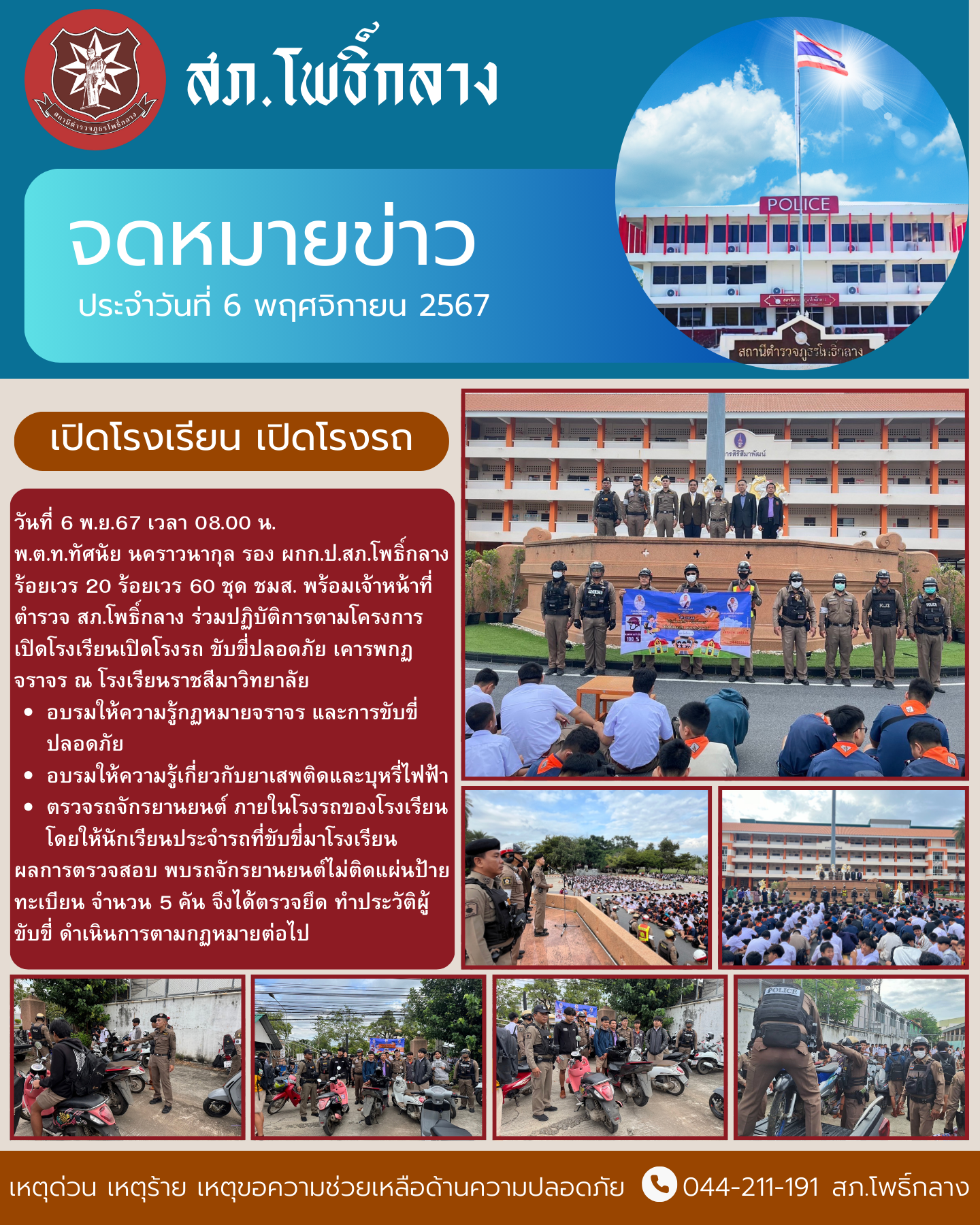 วันที่ 9 ธ.ค.67 เวลา 09.00 น. พ.ต.อ.วีณวัฒน์ ศรีแย้ม ผกก.สภ.โพธิ์กลาง พร้อมด้วยคณะผู้บริหาร สภ.โพธิ์