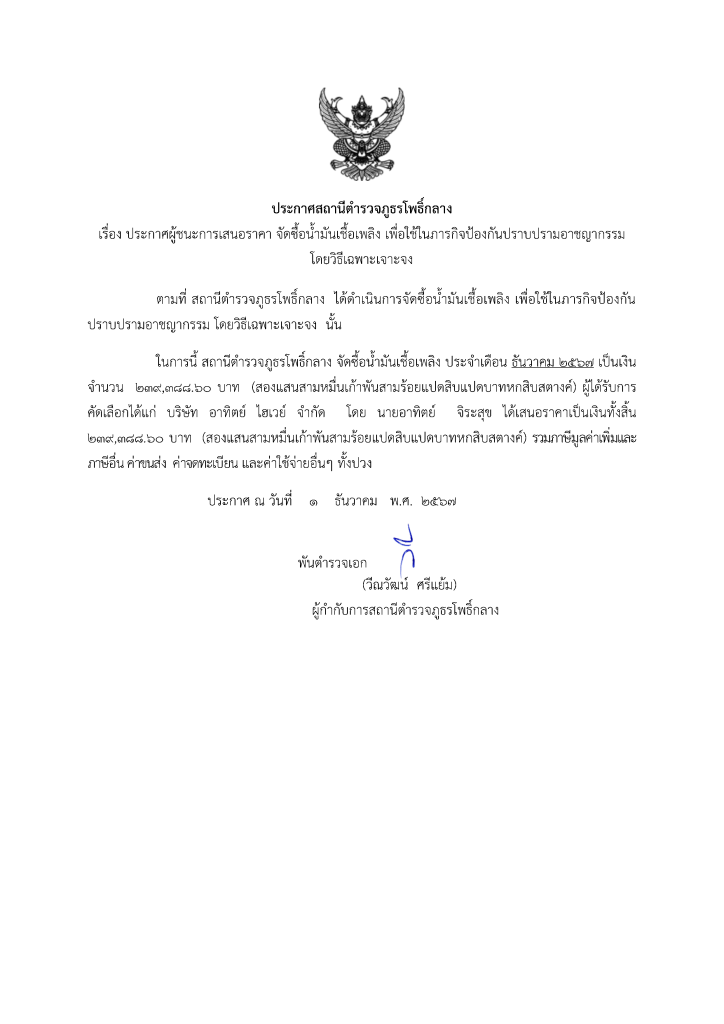 ประกาศจัดซื้อ จัดจ้าง ประจำเดือน ธันวาคม พ.ศ.2567