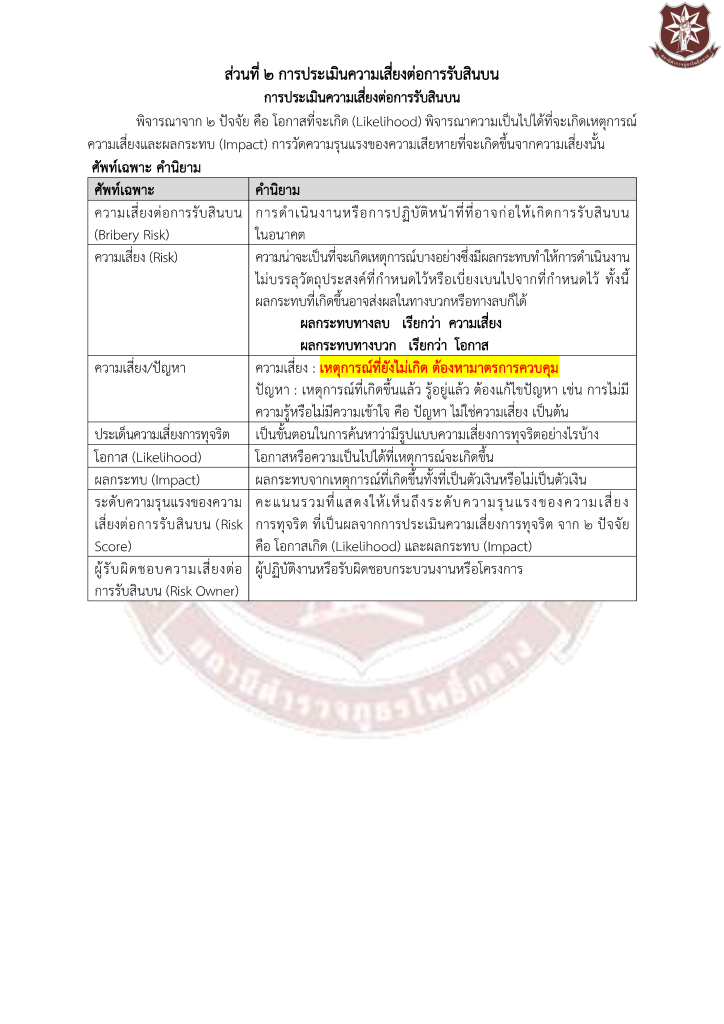 O20 การประเมินความเสี่ยงต่อการรับสินบน