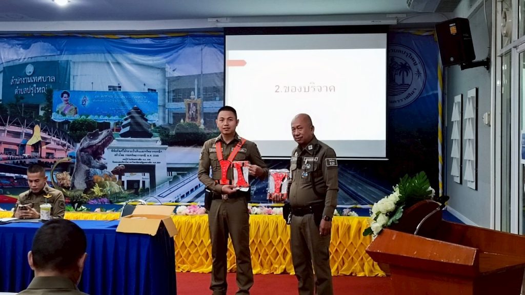 การบรรยายให้ความรู้ความเข้าใจในการจัดการของบริจาค โดย พ.ต.ท.วรวุธิ อธิราชเทวินทร์ สว.อก.สภ.โพธิ์กลาง และในขณะบรรยายมีการสาธิตการรับบริจาคโดยให้ข้าราชการตำรวจ สภ.โพธิ์กลางมอบเสื้อสะท้อนแสงให้แก่ สภ.โพธิ์กลาง