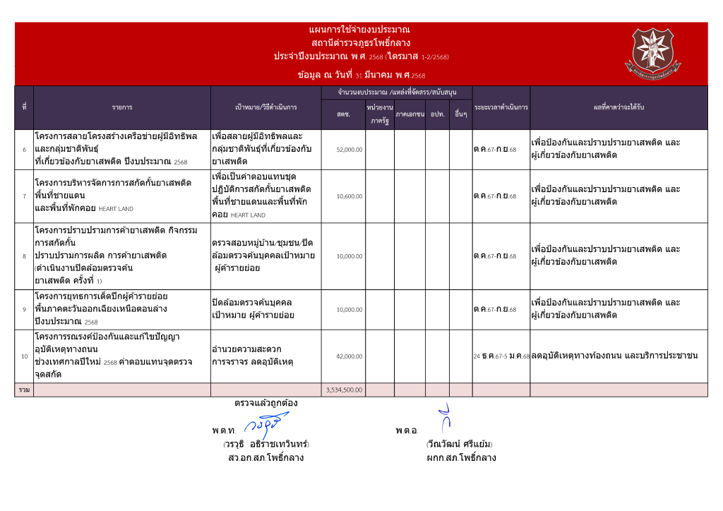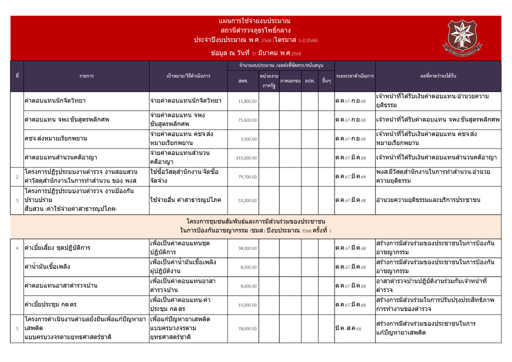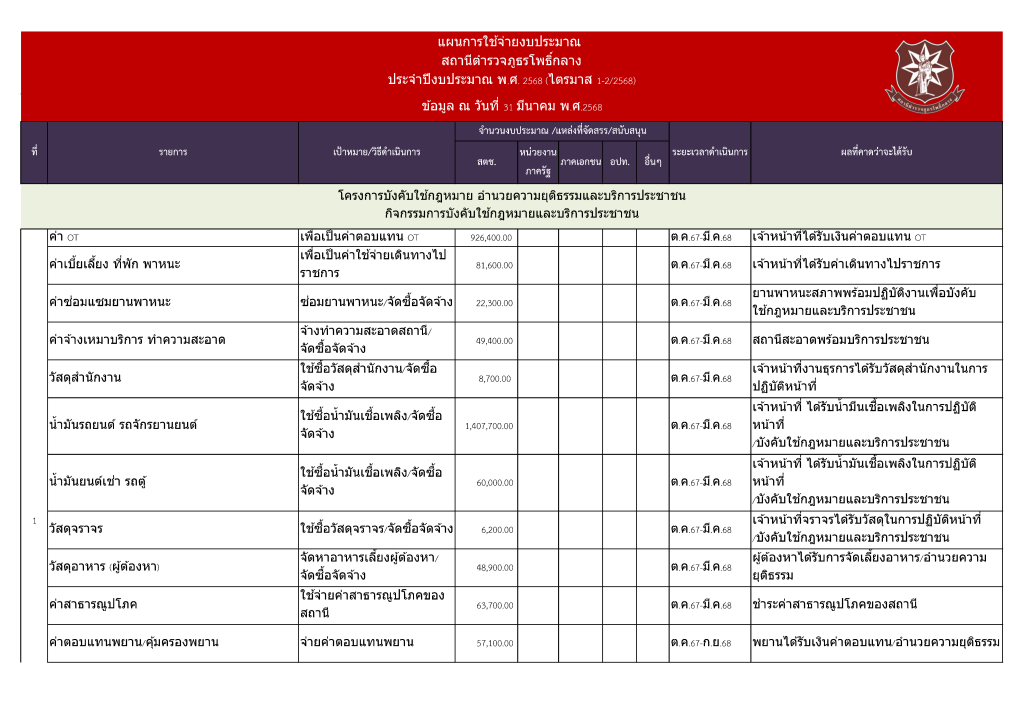 รายงานแผนการใช้จ่ายงบประมาณประจำปีงบประมาณ พ.ศ.2568